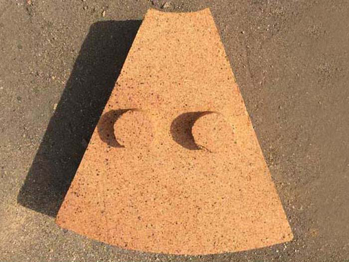 粘土質扇形耐火磚是為防止內襯環形砌磚用磚在其長期轉動中因松動而抽沉、脫落甚至掉落,而將筒體同心圓環柱體內襯分割成若干個形狀尺寸相同的部分,每個部分即為扇形耐火磚。